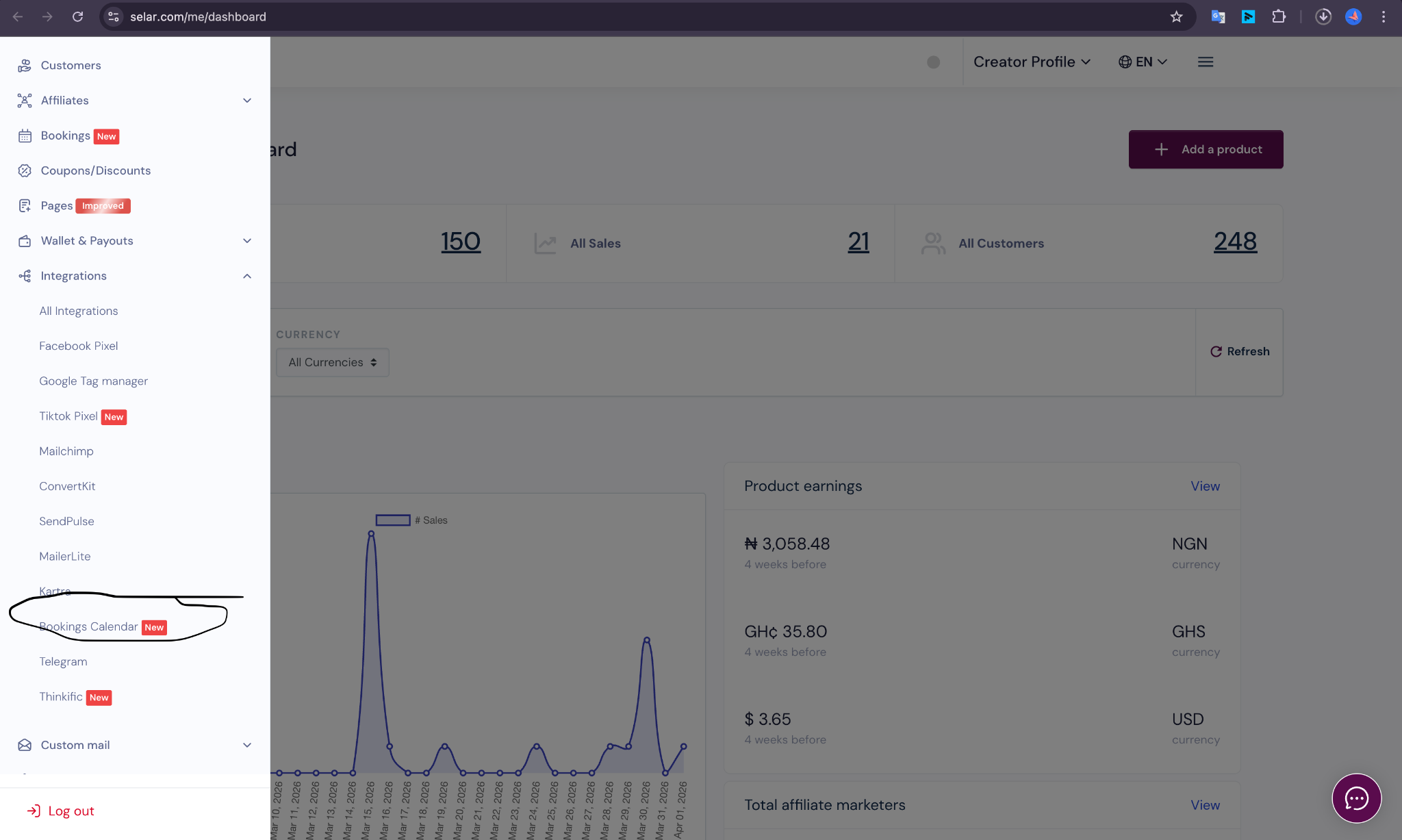 How to Connect Your Calendar & Video Conferencing on Selar Log in to your Selar account at selar.com From the side navigation bar, click Integrations Select Booking Calendar from the dropdown Sync Calendar Google Calendar Connecting your Google ...