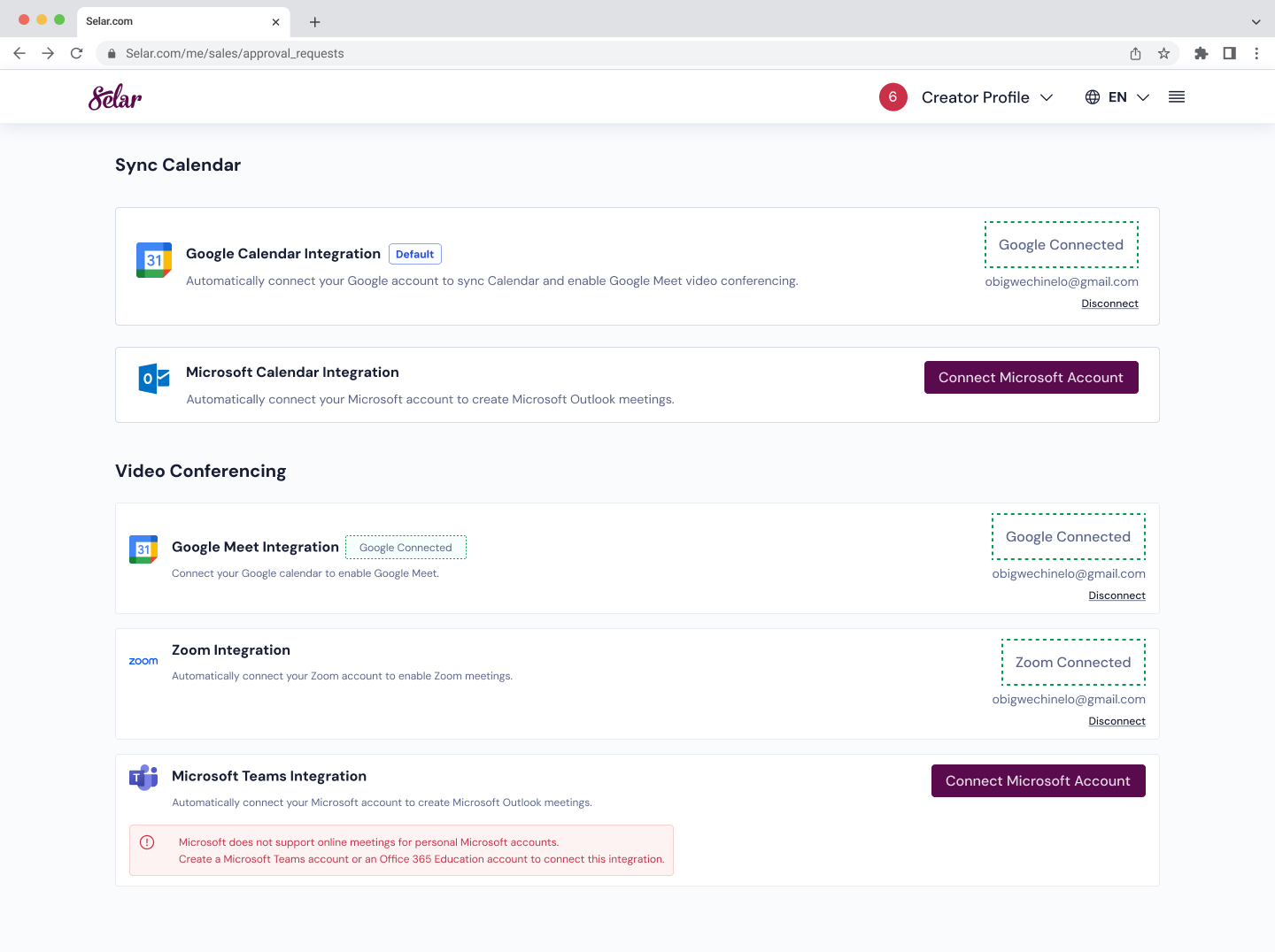 You'll be brought back to Selar and your account will show as Zoom Connected